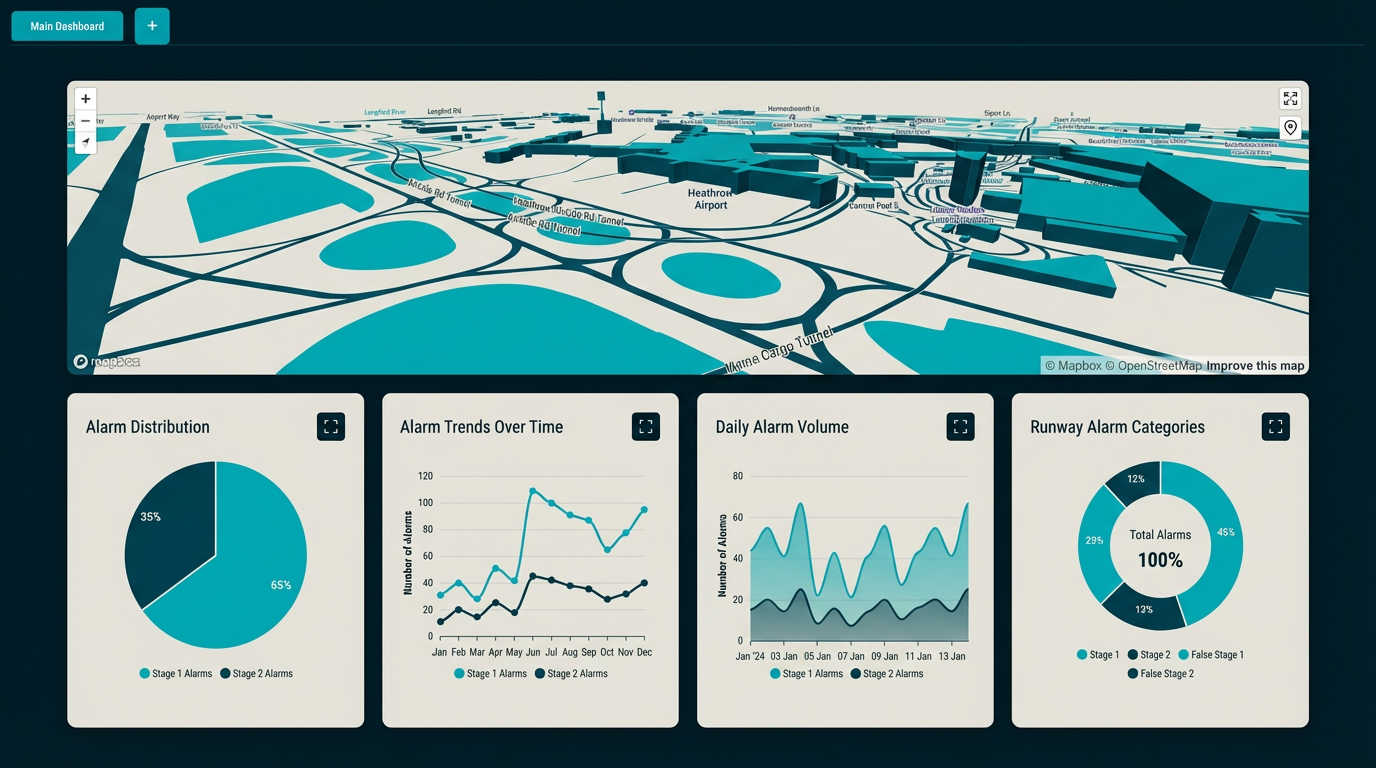 • Traffic & Safety Optimization: Access airport movement statistics and use historical data to fine-tune the system, reduce false alerts, and enhance safety.